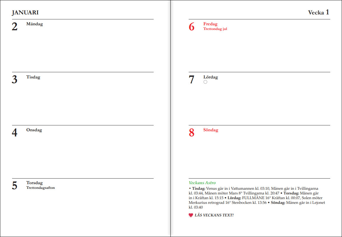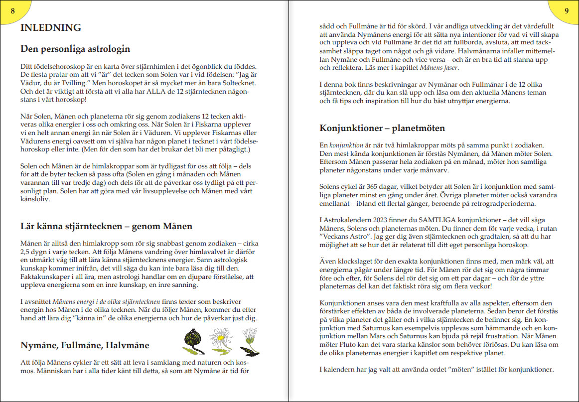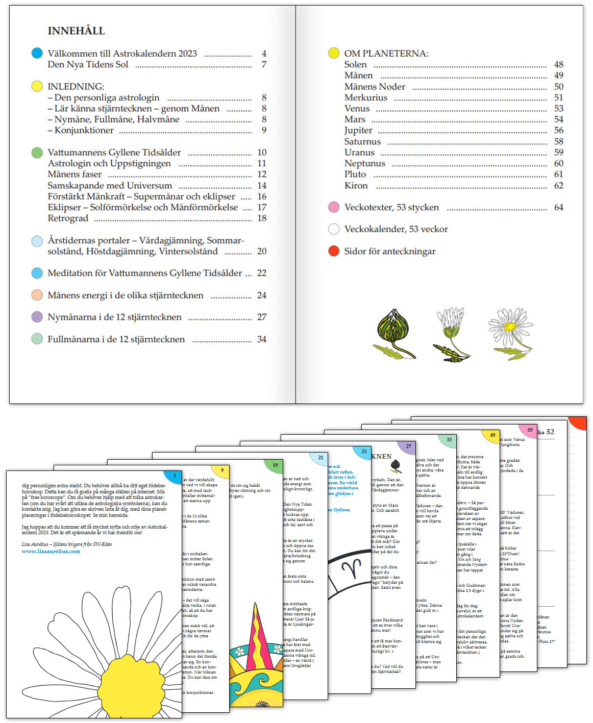 Uppdaterad 29:e augusti 2022 ASTROKALENDERN 2023 Astrologibok och veckokalender i ett! Inbunden, hårdband, 224 sidor i färg Denna bok är skapad för dig som vill använda astrologi som ett hjälpmedel i ditt dagliga liv. Astrologin hjälper oss att vara medvetna om energier och processer som pågår inom oss och påverkar både vår inre och yttre verklighet. Vi befinner oss i övergången till Vattumannens Gyllene Tidsålder och detta är en prövande tid då det är viktigt att hålla fokus på det som ger oss glädje och kraft.